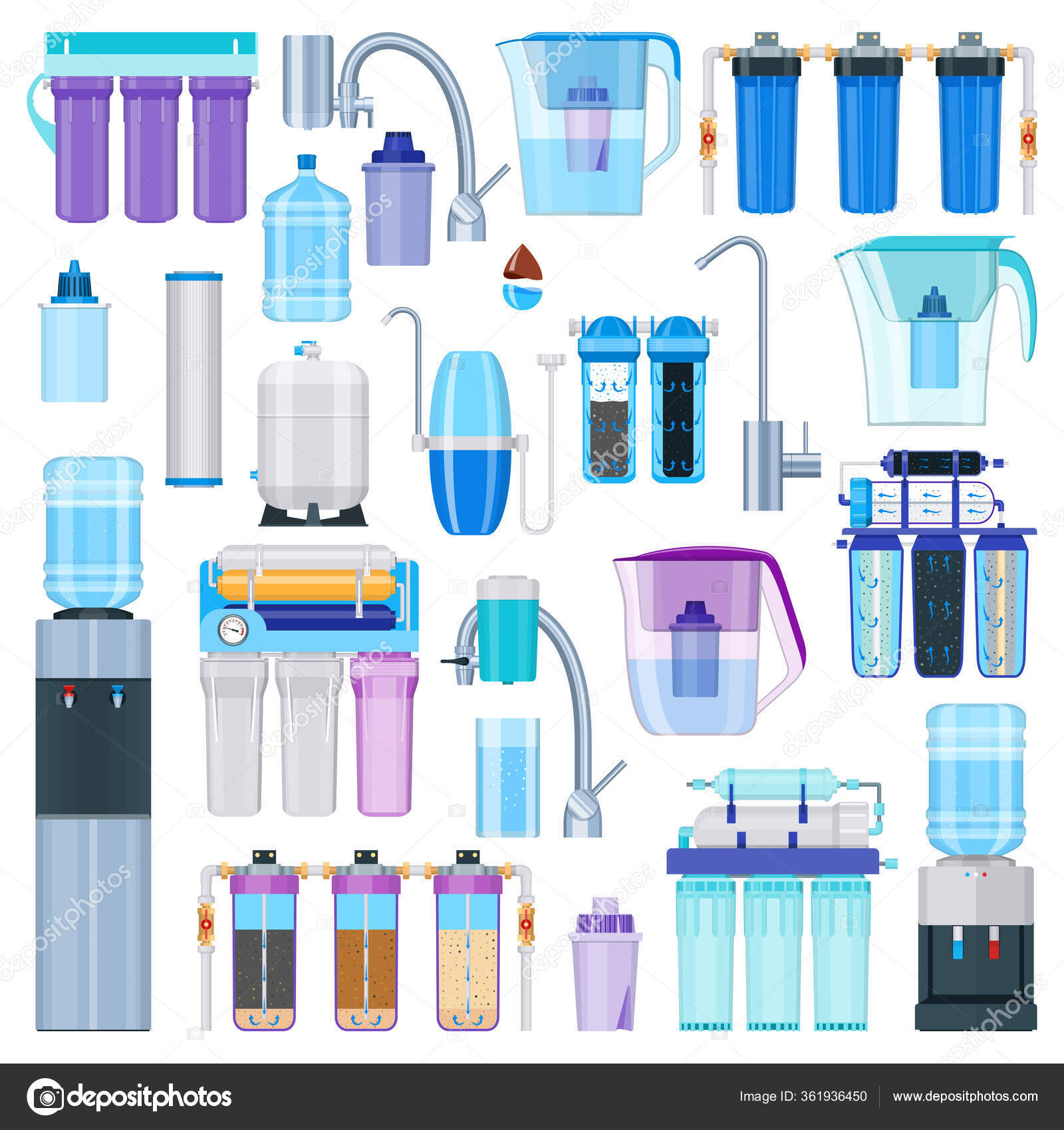 Water Filtration Icons Set Realistic Water Filters Containers Water Coolers Vector Image By C Genestro Vector Stock 361936450