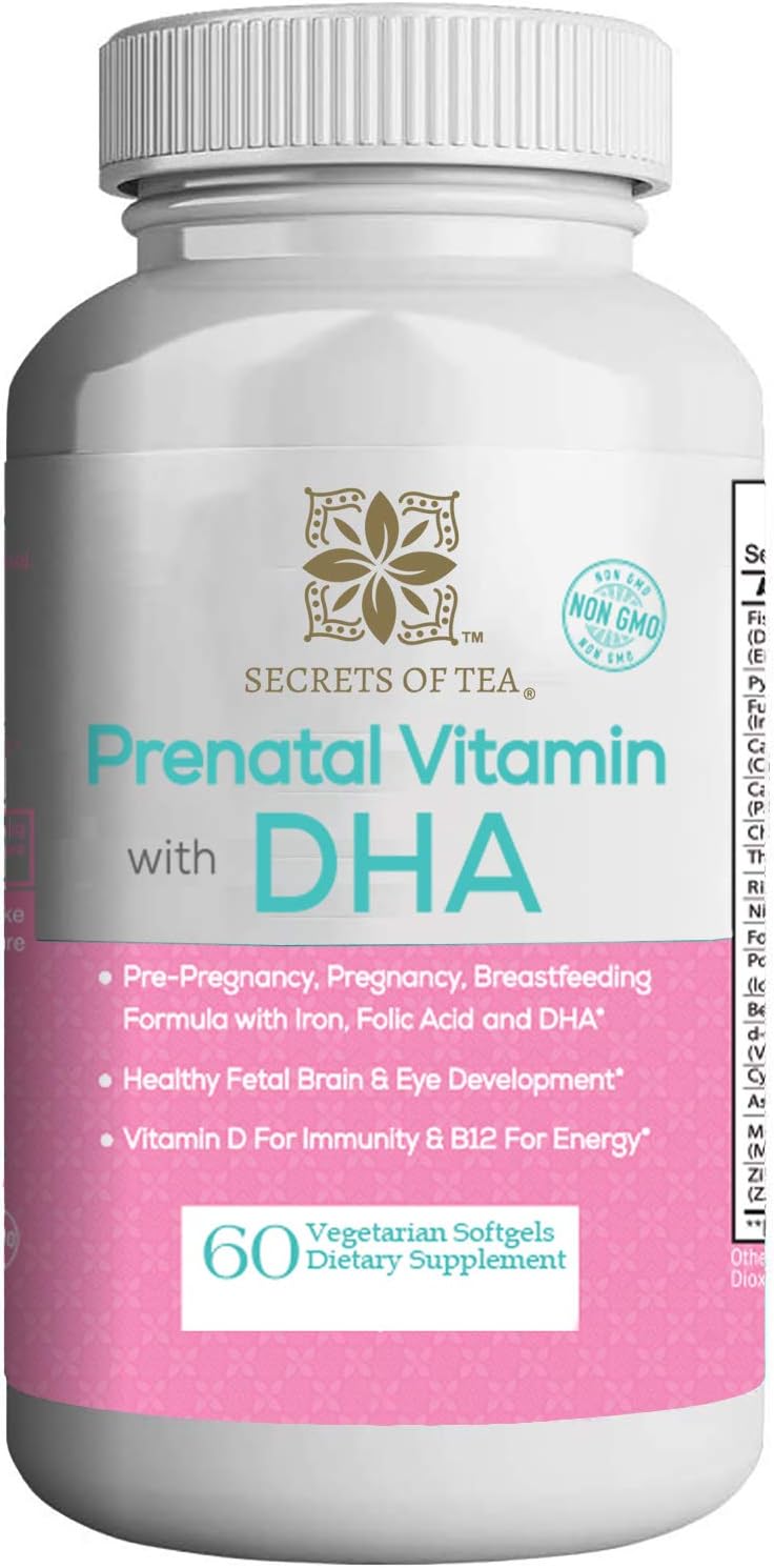 Amazon Com Secrets Of Tea Prenatal Vitamins With Dha Folic Acid Iron Vitamin D And B12 Vegetarian Soft Gel Vitamin Capsules 60 Count 1 Pack Health Personal Care