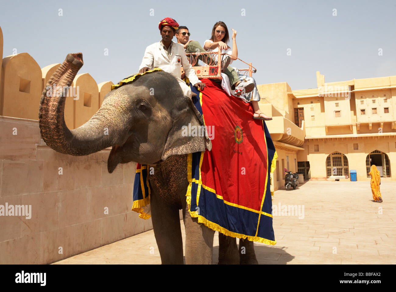 People Riding Elephants Outside The Amber Palace Jaipur Rajasthan Stock Photo Alamy