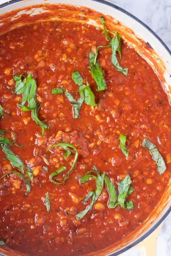 Vegan spaghetti sauce with lentils is an easy vegan recipe that packs flavor and nutrition.