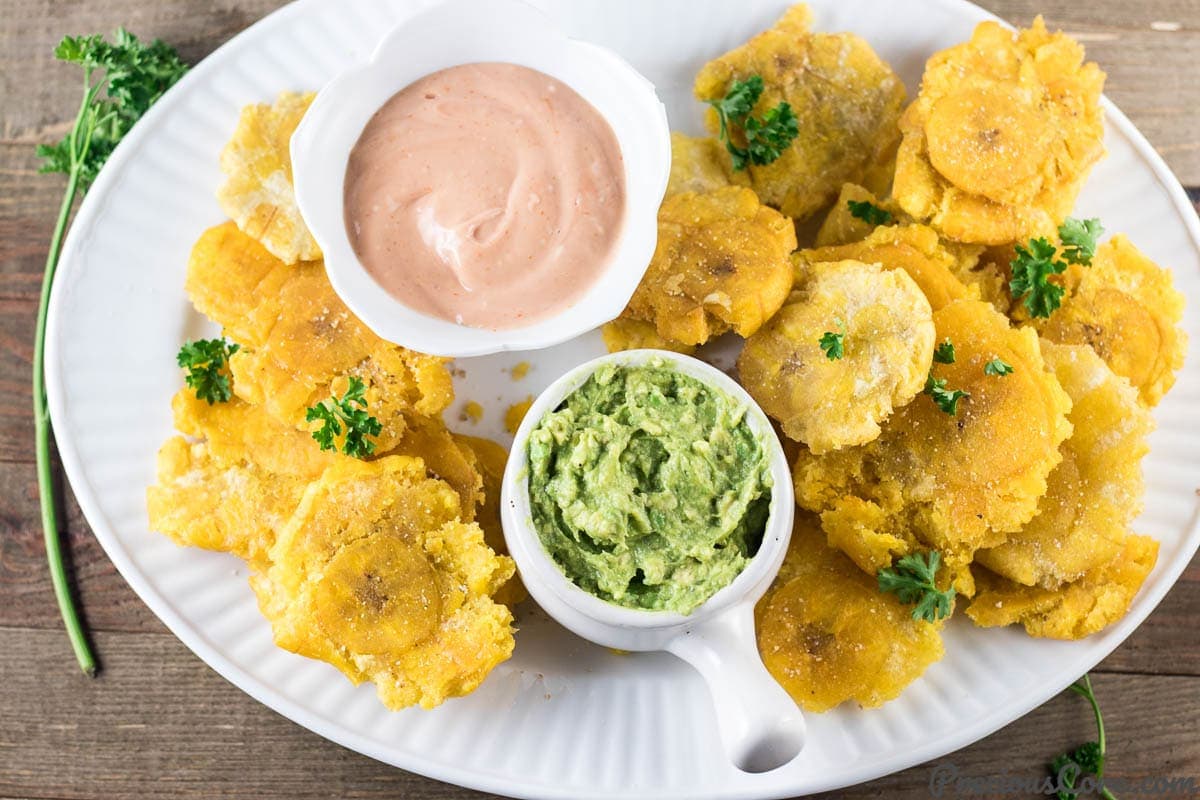 Tostones Fried Plantains With Mojo Garlic Sauce